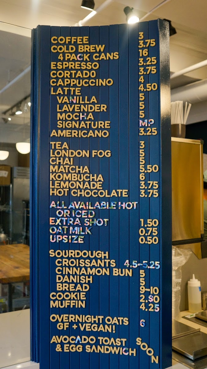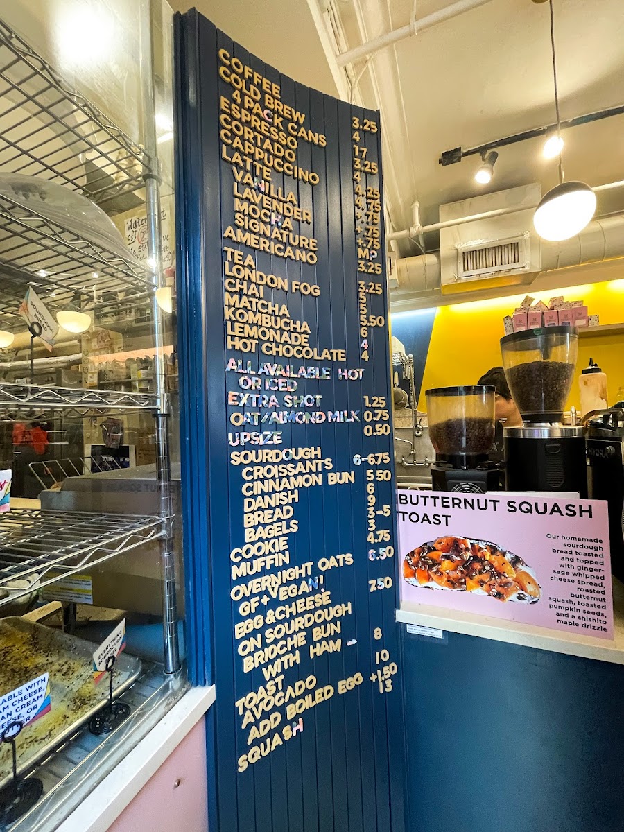 The menu also features seasonal offerings, like the intriguing Bakers Toast, alongside a variety of delectable pastries including quiches, croissants, and cookies. For a wholesome start to your day, try the Avocado Toast paired with an Egg Sandwich or the refreshing Overnight Oats. Each dish reflects the cafe's commitment to quality and creativity, ensuring that every visit is a memorable one.